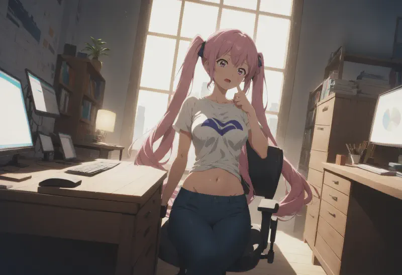 これは基本的にAnimagineXL 3のプロンプトをanima_pencilに変換したものです。結果から見ると、非常に初歩的な試みにしては良いですね!鮮やかな色彩とよく描かれた背景があります。 その後、最小限の調整だけで、まやちゃんを彼女のカジュアルな服装で生成してみました。この結果もよかったです!