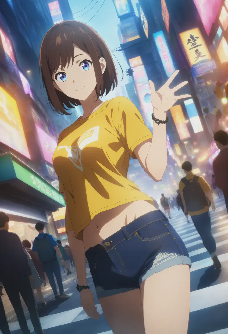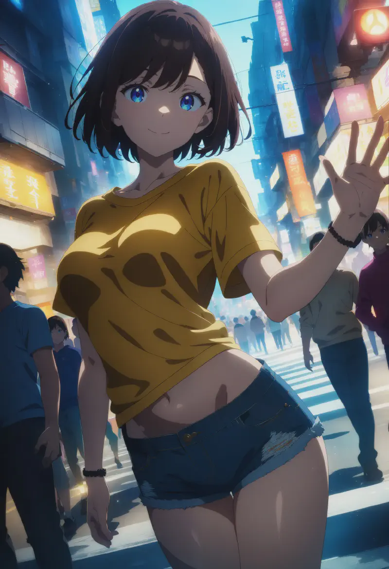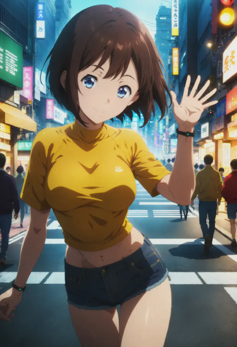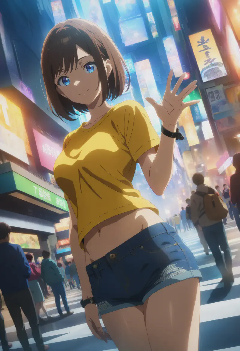 1girl, original, (solo:1.1), standing, waving, cowboy shot, athletic,