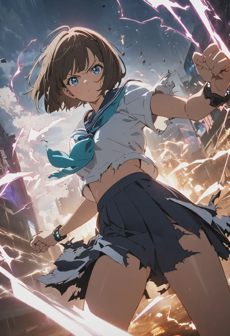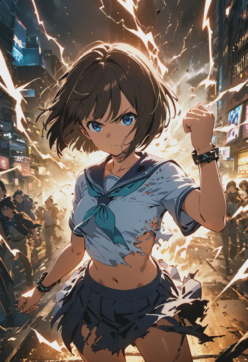 このパワードスーツにはいい光沢がありますが、まやちゃんの腰がカバーされているイラストを得るまで少し時間がかかりました。ここでの背景には、ほとんどのSDXLモデルやAnimagine XLと同様の問題があり、少しカオスであり、いくつかの高層ビルは奇妙な形をしていますが、画像の全体的な構成はかなり良いです(この問題を軽減する方法は、レビューの後半で説明します)。