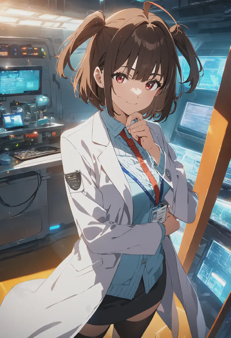 さて、重要な仕事からアニャさんを引き離すことなく、次は私たちのお気に入りのクレイジーな天才エンジニア、詠子さんに焦点を当てましょう。髪型だけでなく、しばしばジャケットと間違えられる白衣も問題となります(Animagine XLでも同様で)、一部のモデルでは適切に生成できないことがあります。7th Anime XL Aがどのように彼女を扱うか見てみましょう。