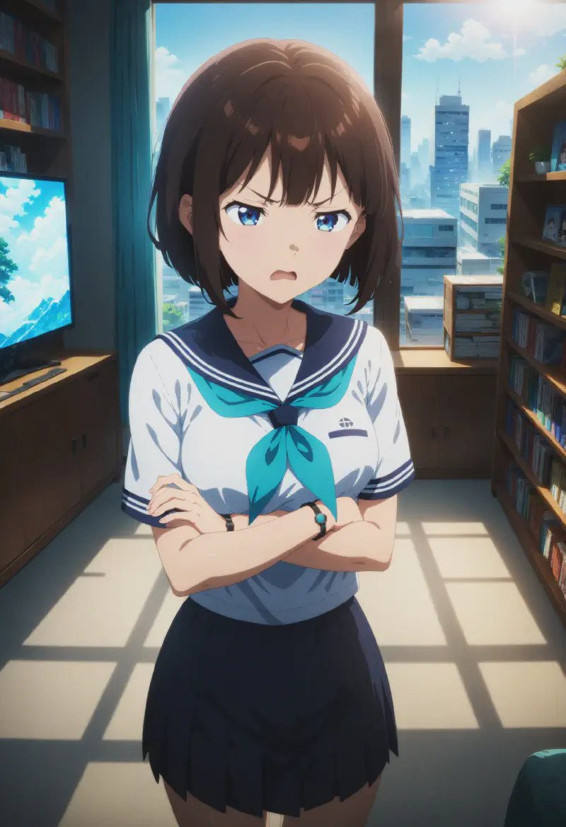 1girl, original, (solo:1.1),standing, crossed arms, cowboy shot,