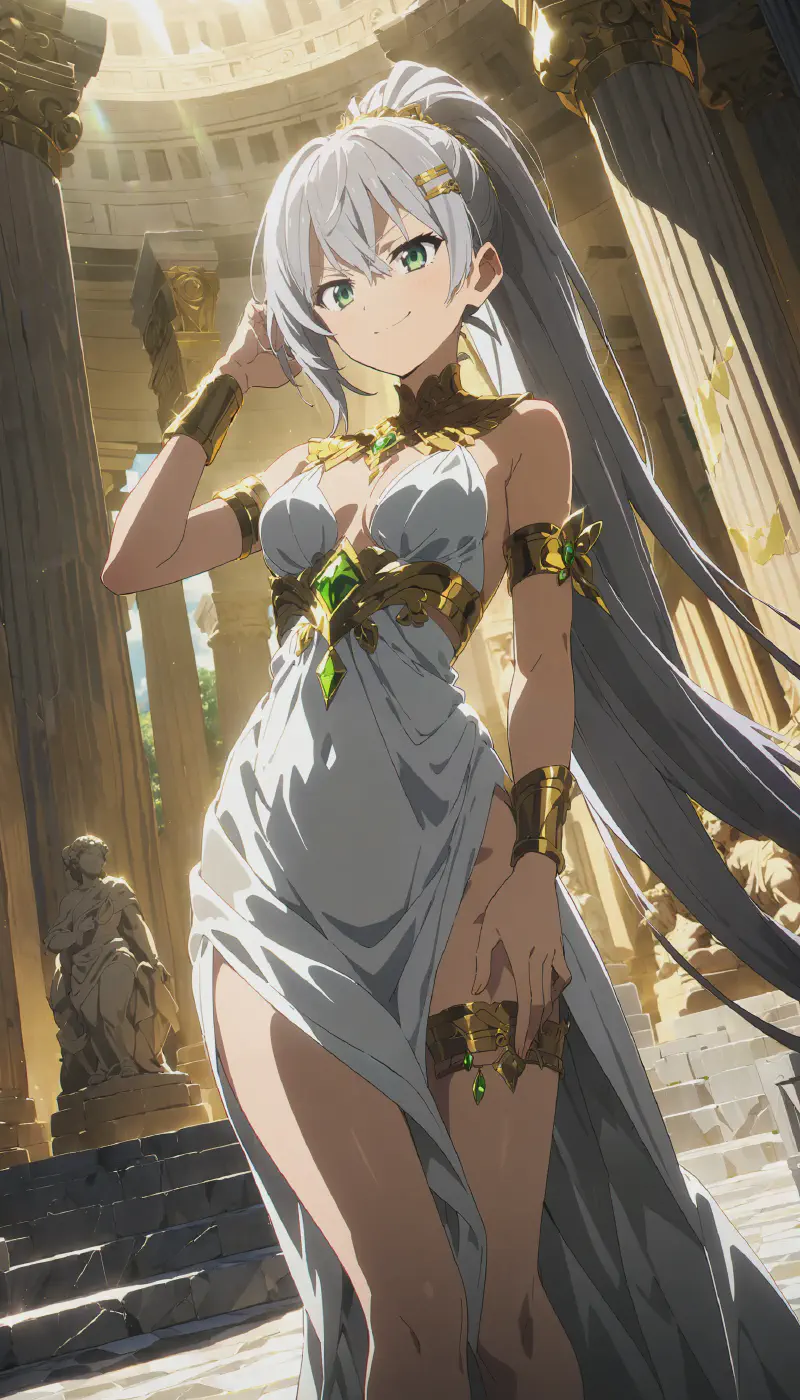 very long hair, ponytail, high ponytail, long ponytail, green eyes,