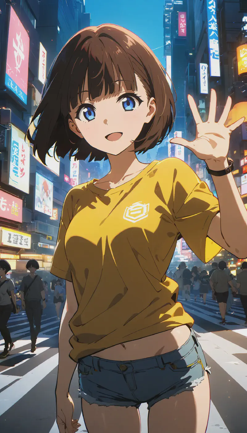 1girl, original,(solo:1.1), standing, waving, cowboy shot, athletic,