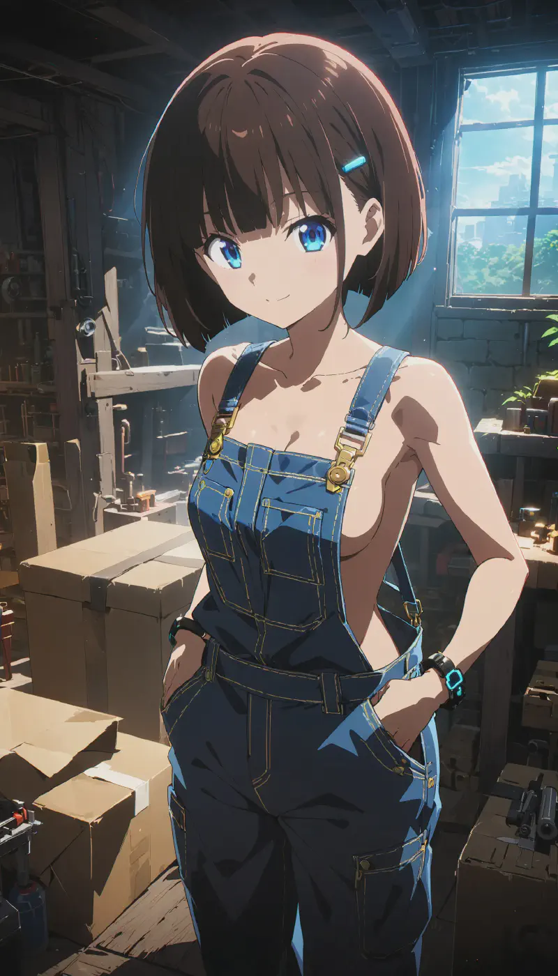 medium breasts, intricate dark brown hair, blue eyes, bob cut, short hair,