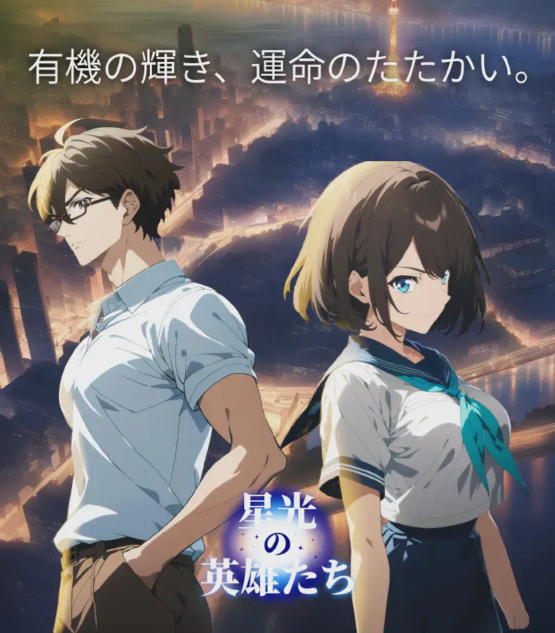 「星光の英雄たち」 は、80~90年代のアニメから大きな影響を受けたエキサイティングなサイエンスフィクションです。友情、チームワーク、個々の成長、冒険、そしてユーモアが詰め込まれたこの物語では、キャラクターたちが自己発見の旅を重ねながら都市での激しい戦いや予期せぬ危機に立ち向かいます。懐かしいアニメの熱量が融合した世界観を、ぜひお楽しみください。