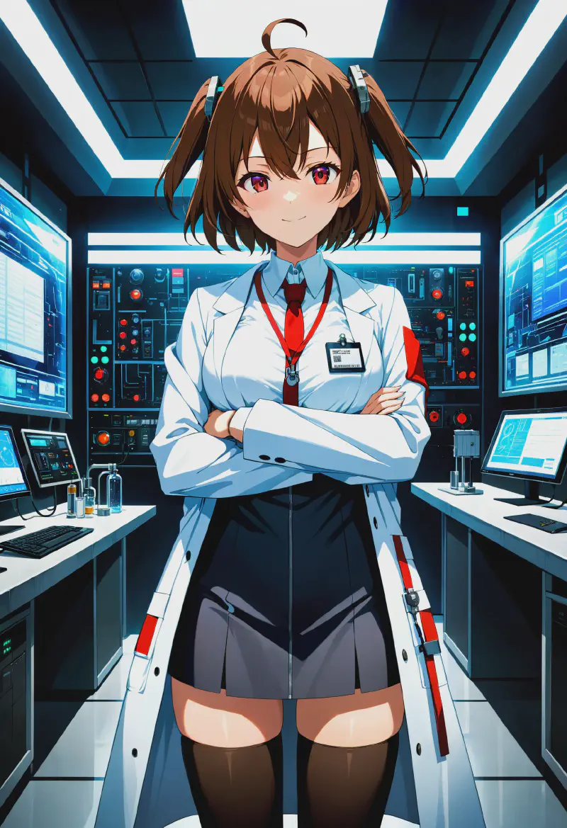 futuristic laboratory, indoors, cinematic angle, anime artwork,