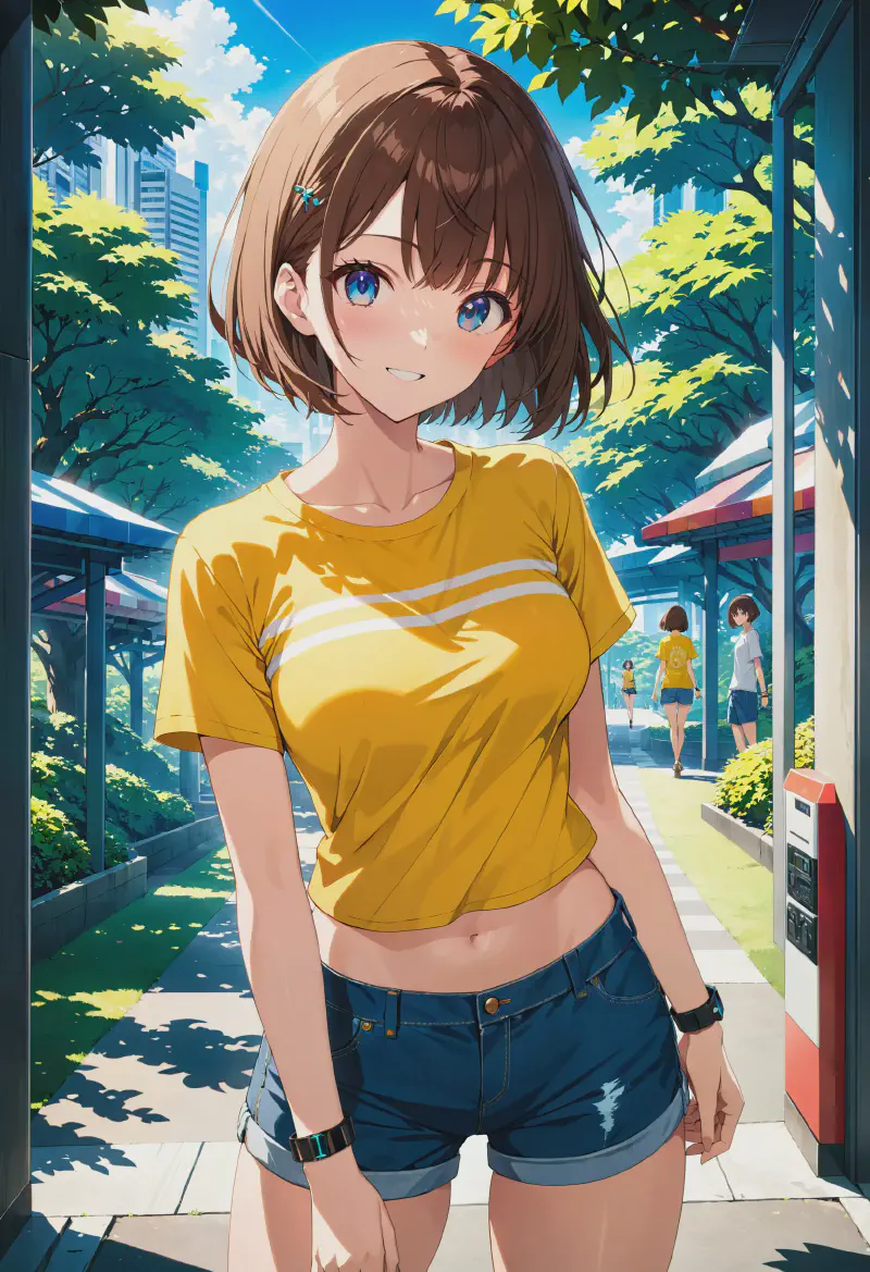 これは基本的にAnimagineXL 3のプロンプトをanima_pencilに変換したものです。結果から見ると、非常に初歩的な試みにしては良いですね!鮮やかな色彩とよく描かれた背景があります。 その後、最小限の調整だけで、まやちゃんを彼女のカジュアルな服装で生成してみました。この結果もよかったです!