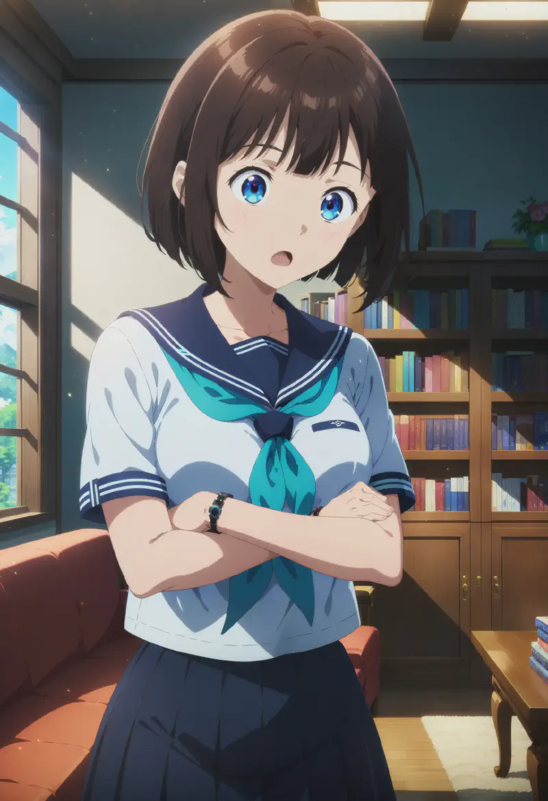 見ての通りです(手は気にしないでくださいね!w)、かなりいいアニメ風の「フラットカラー」を得ることができます。しかし、これは欠点となり、生成されたイラストはいくつかの詳細を失います。この問題は、明るい光の中での主題を持つイラストを生成する際に非常に明らかで、すべてが少し平坦すぎます。稀に、顔が体の残り部分と比較して明るすぎることもあります。