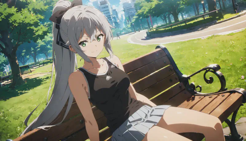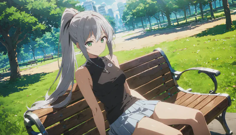 それでは、美しい公園の風景を目指して試してみましょう! (ネガティブプロンプトにlow ponytail, side ponytailが追加されました。).
