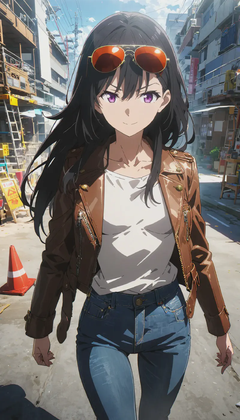 まずは、まやちゃんが街中にいる比較的シンプルな画像から始めましょう (ネガティブプロンプトにbangle, sweatband, ahogeが追加されました。):