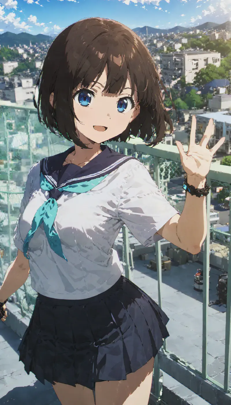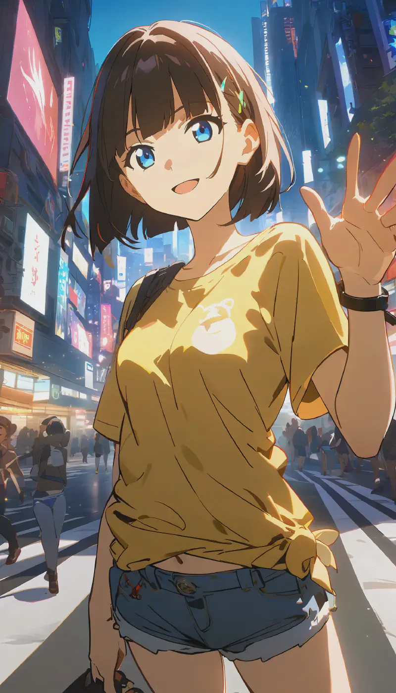 1girl, original,(solo:1.1), standing, waving, cowboy shot, athletic,